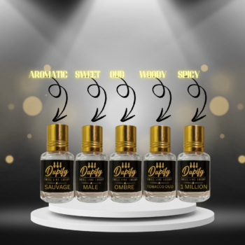 - Dupify Premium Attar Perfume Oil Gift Set (5 x 3ml) – Sauvage, Male, Ombre, Tobacco Oud, 1 Million | Long Lasting Fragrance Oils for Men Original price was: ₹599.00.₹299.00Current price is: ₹299.00.